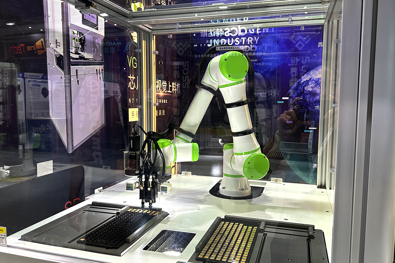 森导智能的三防漆喷涂机器人工作站重复作业精度高达±0.02mm,运行误差小,可保证生产节拍,缩短生产周期,提升生产效率。依托三防漆喷涂机器人工作站提出的自动化喷涂解决方案,能够精准控制胶量、点位、喷涂轨迹,规避人工作业造成溢胶、缺胶等涂胶不均问题,节省材料,保证良品率,成为客户迈向高品质生产的重要工具。通过三防漆喷涂机器人工作站代替人工作业,可把工人从毒害环境中解放出来,避免胶水对人体的伤害,保障工人健康安全。
